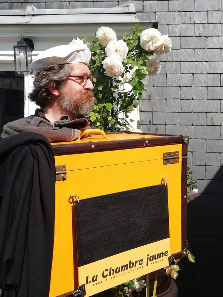 En quelques mois, cette petite merveille a vu du pays : Antoine a promené son atelier photographique nomade de la mairie du 5ème arrondissement de Paris pendant le festival Quartier du livre, à l’estaminet littéraire L’Eurydice, 79 rue du Cardinal Lemoine, en passant par Boulogne, Le Havre et la Bretagne. La délicatesse d’Antoine a, sur le chemin, accouché de nombreux « portraits d’âmes amies », selon son heureuse expression. Il n’a pas limité ses photographies aux proches, il a eu la générosité de faire des portraits sensibles d’inconnus attirés par la magie de la boite et par la joie qu’elle génère. En voyant Antoine accueillir les prétendants au portrait et œuvrer à leur création, m’est venue l’évidence que sa Chambre jaune est une arme de cohésion massive.