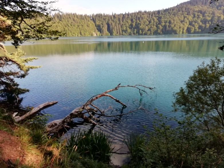 Ce bijou né il y a 7000 ans des amours de la lave et de l’eau, avale qui ose s’y baigner. Il prend à chaque saison une couleur turquoise des plus fascinante à laquelle il ne faut pas se fier, c’est un enjôleur sans fond dont les eaux sont glaciales à seulement quelques mètres du bord. On dit qu’une cité y a été engloutie parce que ses habitantes étaient volages. On dit qu’on en aperçoit encore parfois le clocher. On dit que lancer une pierre au milieu déclenche foudre et tonnerre. Et même un puissant geyser.