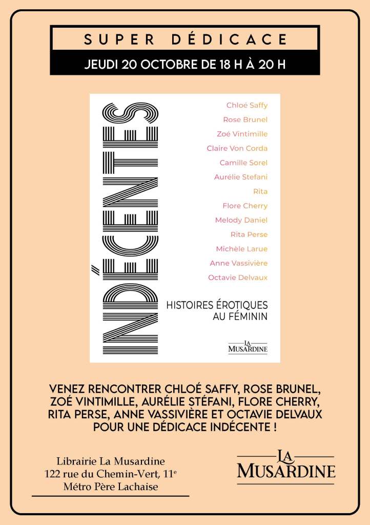 INDÉCENTES : Dédicaces le 20 septembre 2022 à la Musardine de 18 h à 20 h.