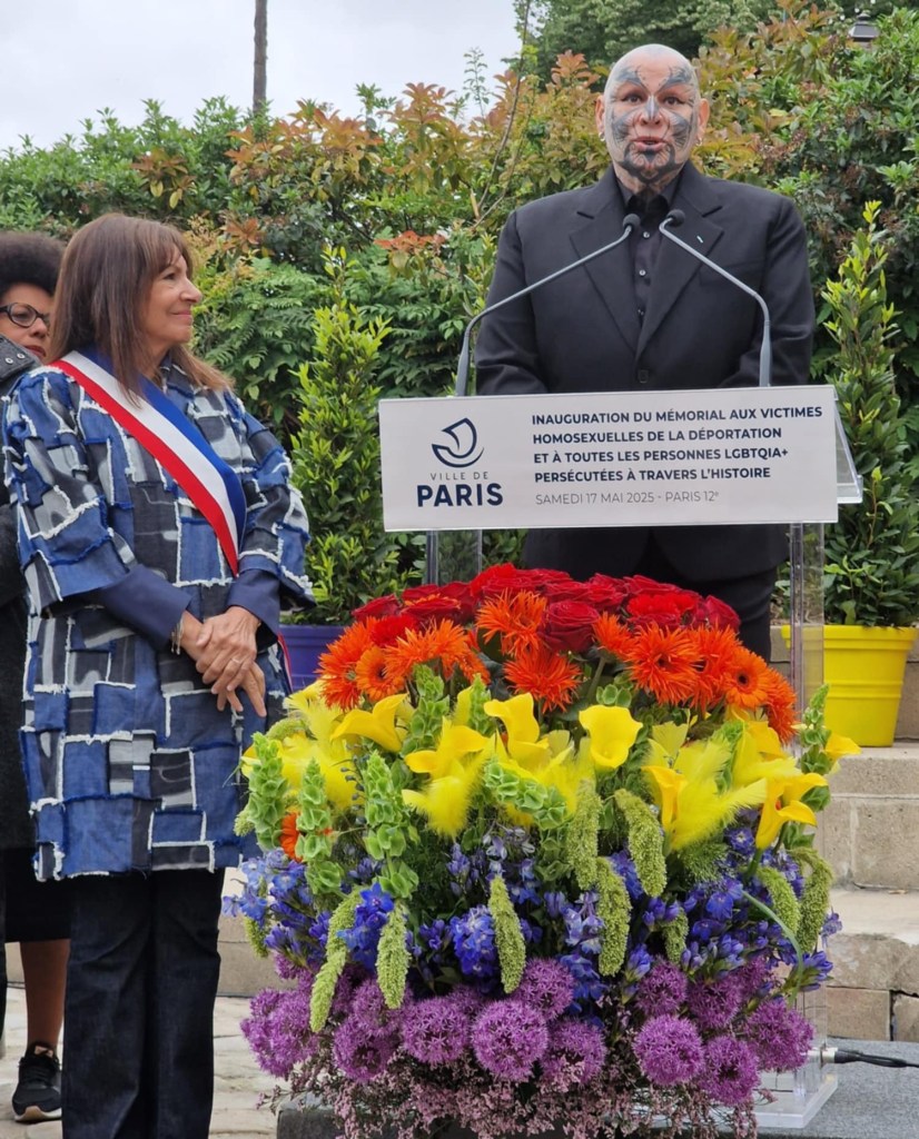 Vendredi 17 mai, lors de la Journée mondiale contre l’homophobie et la transphobie, inauguration du Mémorial aux victimes homosexuelles de la déportation et à toutes les personnes LGBTQIA + persecutées à travers l’histoire. La France était jusqu’à ce jour un des rares pays au monde sans mémorial à ces victimes de la haine. C’est l’aboutissement de 12 ans de travail de l’association Les oubliés de l’ histoire, celui des militants parisiens et des régions, celui de la ville de Paris. Un évènement à portée nationale et une reconnaissance publique longtemps attendue. Jusqu’à peu, les associations déposaient des gerbes en marge des cérémonies officielles, aujourd’hui nous étions accompagnés par 5 porte-drapeaux avec le triangle rose.