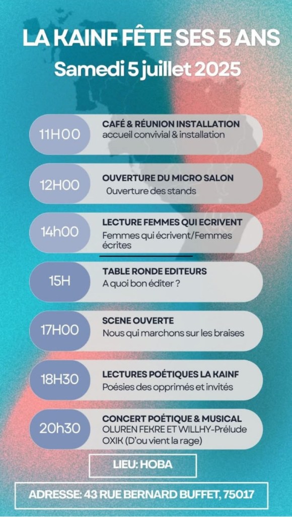 Rendez-vous pour fêter les 5 ans des Éditions La Kainfristanaise. Cinq années de littérature insurgée, de voix qui dérangent, de récits qui réparent. On célèbre les livres, les luttes, les lucioles. « Venez rallumer les étoiles avec nous ! »