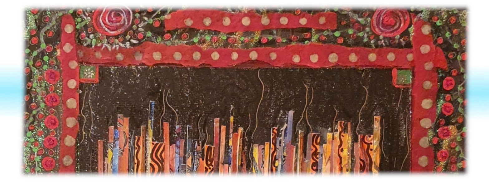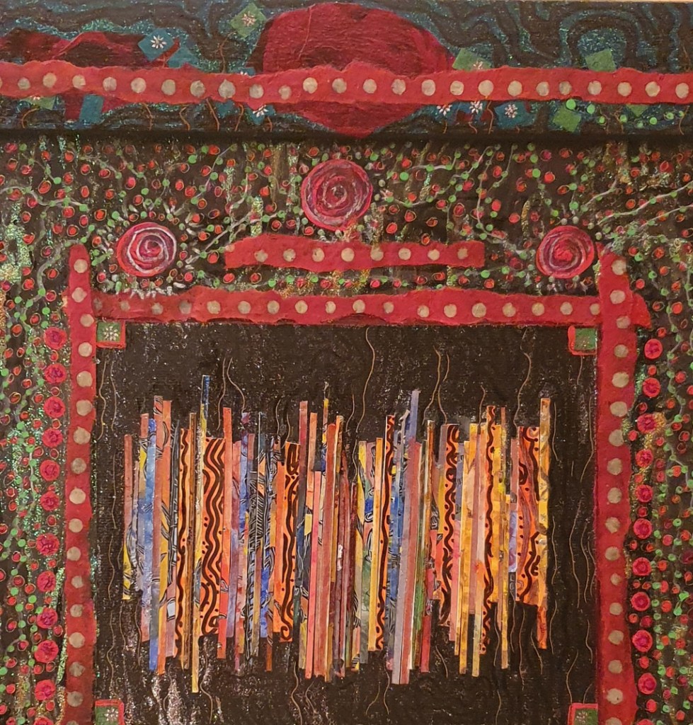 Fragments, je suis fragments, la peinture me le rappelle et l’écriture me le fait oublier, qui m’unifie. Peut-être l’avez-vous remarqué si vous m’avez vue, lue ou… bue. Cette œuvre a été faite pour ma mère, ce sont ses couleurs. Fille de l’hiver et de la rigueur minière, elle demeure peu expansive. Généreuse mais pas chaleureuse, elle a besoin de l’enthousiasme des couleurs chaudes. Et de celui de sa fille aînée. Moi. Dont elle ne comprend pas toujours l’entrain quasi canin. Mais ce n’est pas grave, nous partageons l’amour de l’art. Et l’amour tout court et l’amour tout long.