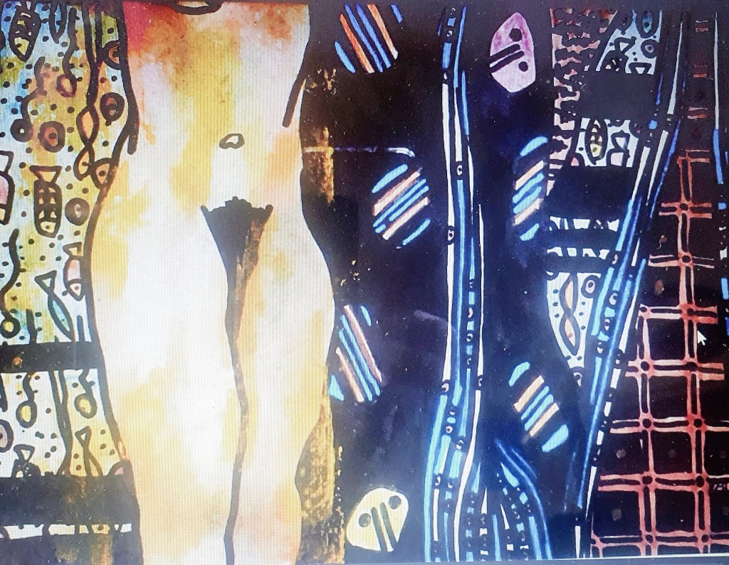 C’est l’histoire d’une fille qui se déshabille direct. Pas d’effeuillage, peu de suspense, si elle a dit oui, c’est oui. Sur ce dessin je ne montre que son corps nu, pas son visage. Car elle est pudique. C’est une femme toute nue et toute pudique. C’est pour cela qu’elle se déshabille directement quand elle est avec l’amant. Par pudeur. Cette femme, c’est moi.